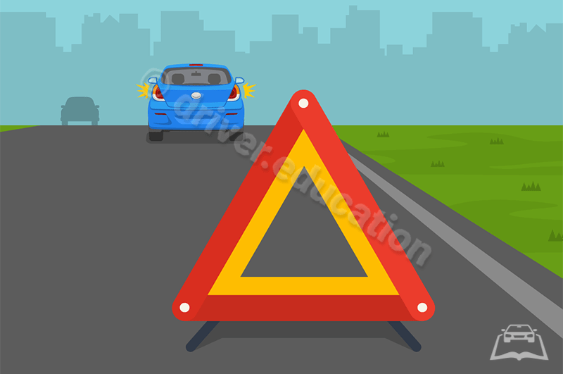 If you have emergency flares or triangles, when you break down you should put them within what distance behind your vehicle?