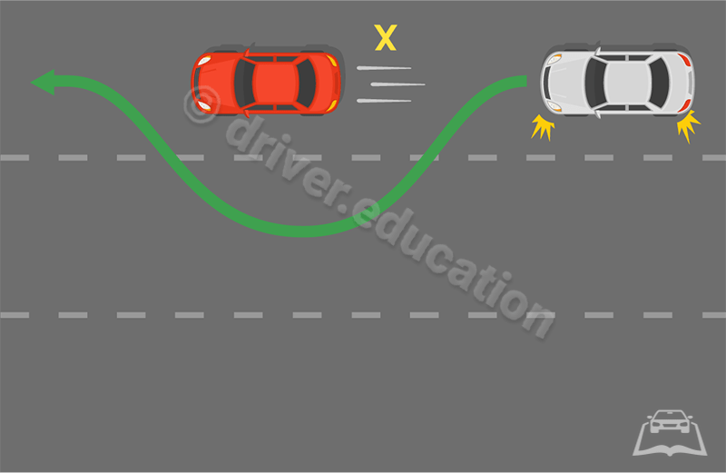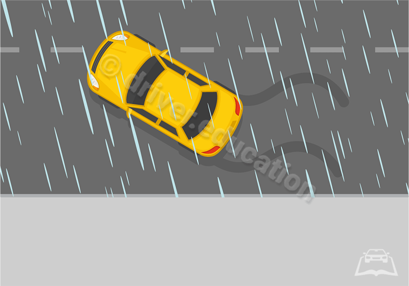 If you start to skid in poor conditions, what should you do with the steering wheel?