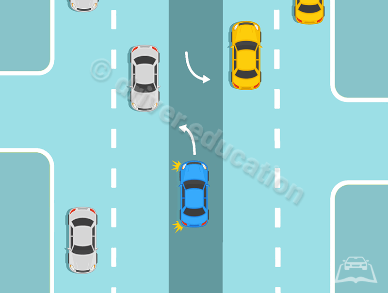 On a two-way roadway with a center lane, the center lane may only be used for...?