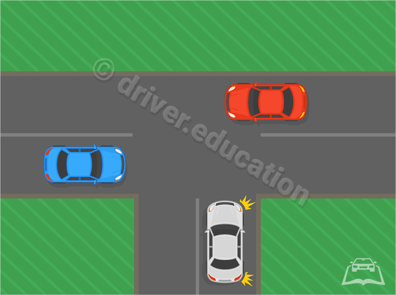 At a "T" intersection without traffic control signs or signals, who must yield?