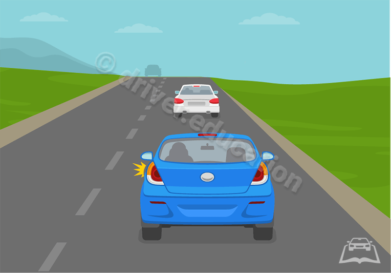 When passing a vehicle on a two-lane highway, you should not return to your original lane until you can see what in your rearview mirror?