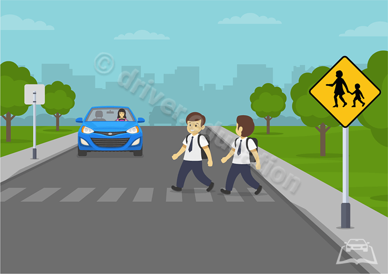 Under what circumstances can you pass a vehicle stop at a crosswalk to allow pedestrians to cross?