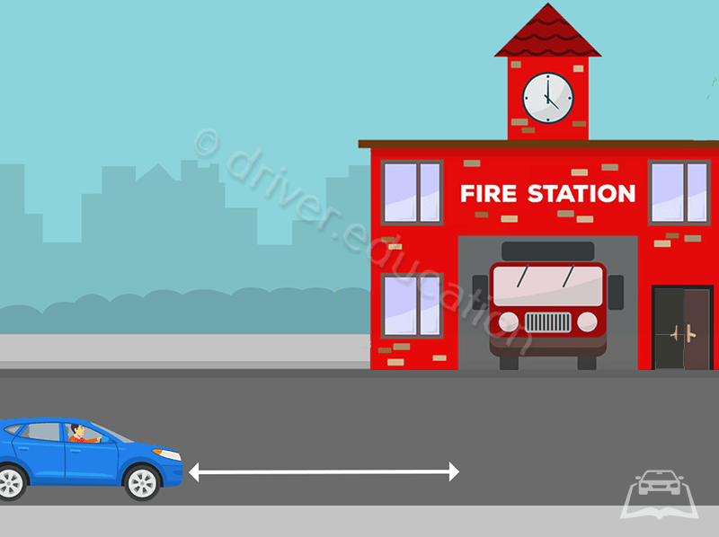You must not park within what distance of the driveway of a fire station on the opposite side of the street?