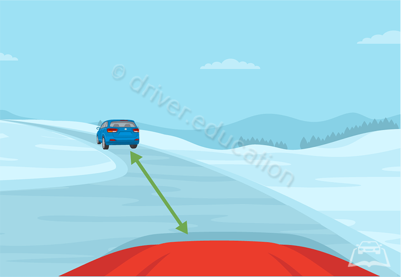 On snow-covered roads, a good rule is to extend your following distance to...?